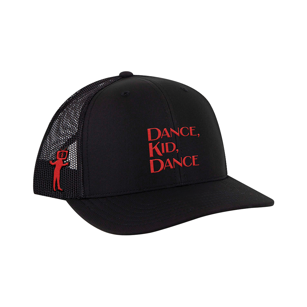 Black trucker hat featuring DANCE, KID, DANCE TOUR on the front and TV man on the side.