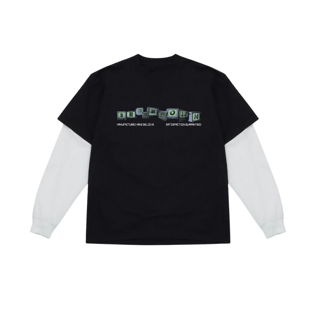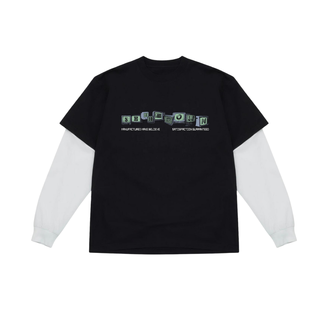 This tee features an oversized, drop-shoulder fit and sewn-in white sleeves that creates a layered look. 100% cotton and heavyweight.