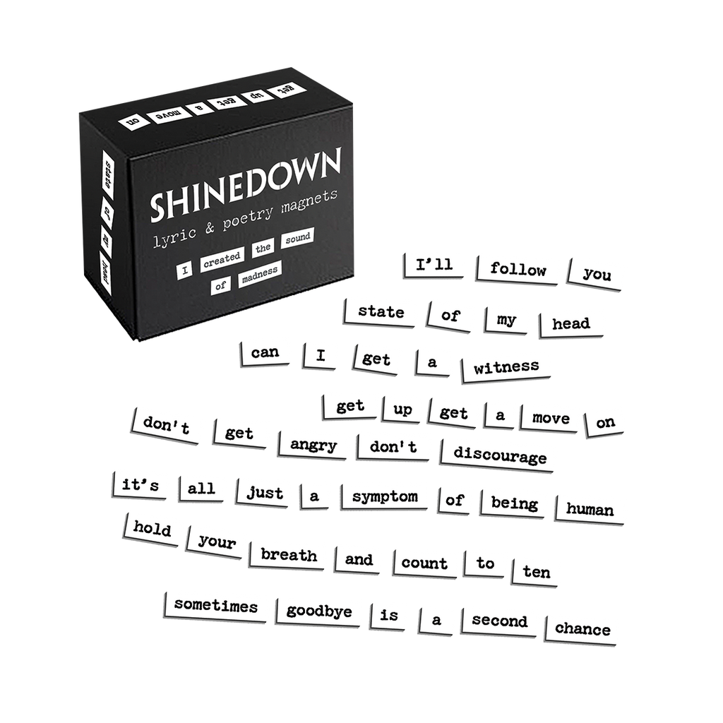 The Lyric Magnet Set is a set of 50 magnets featuring words inspired from Shinedown songs.