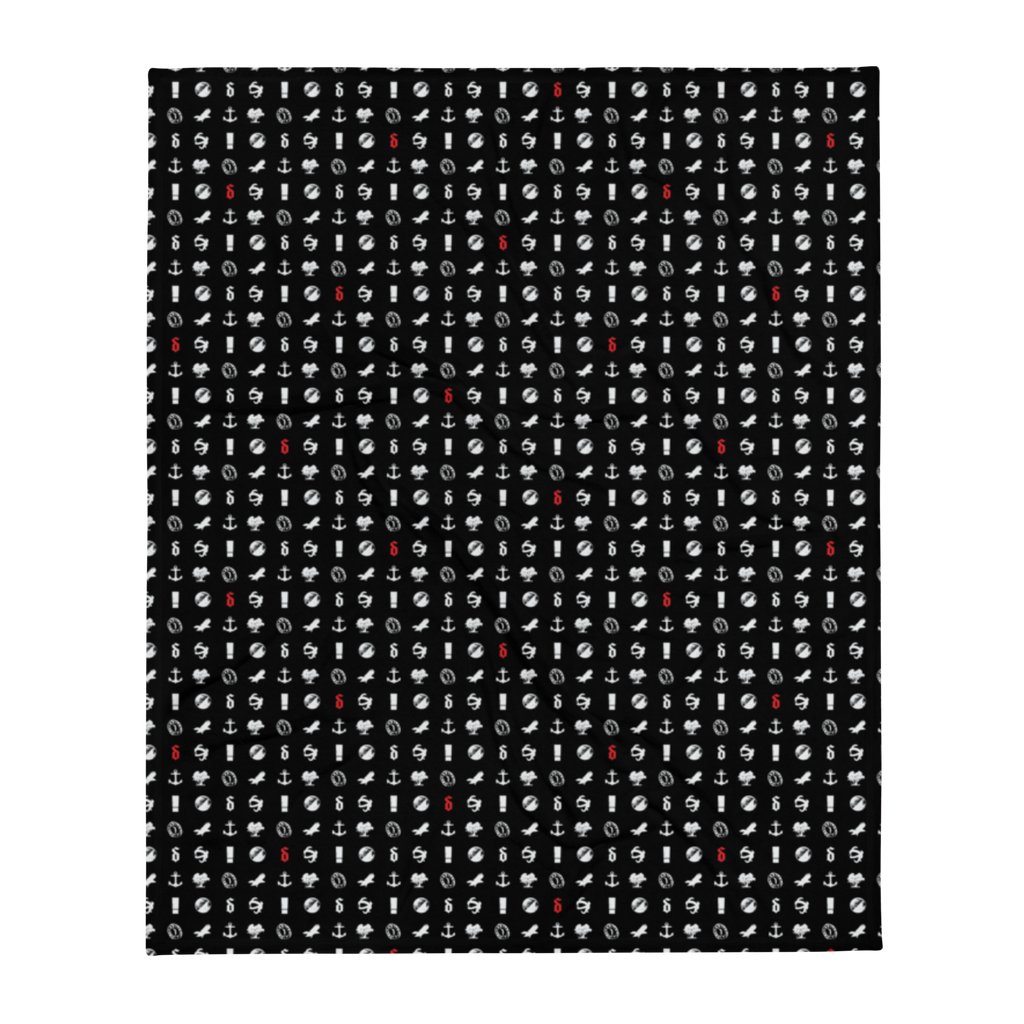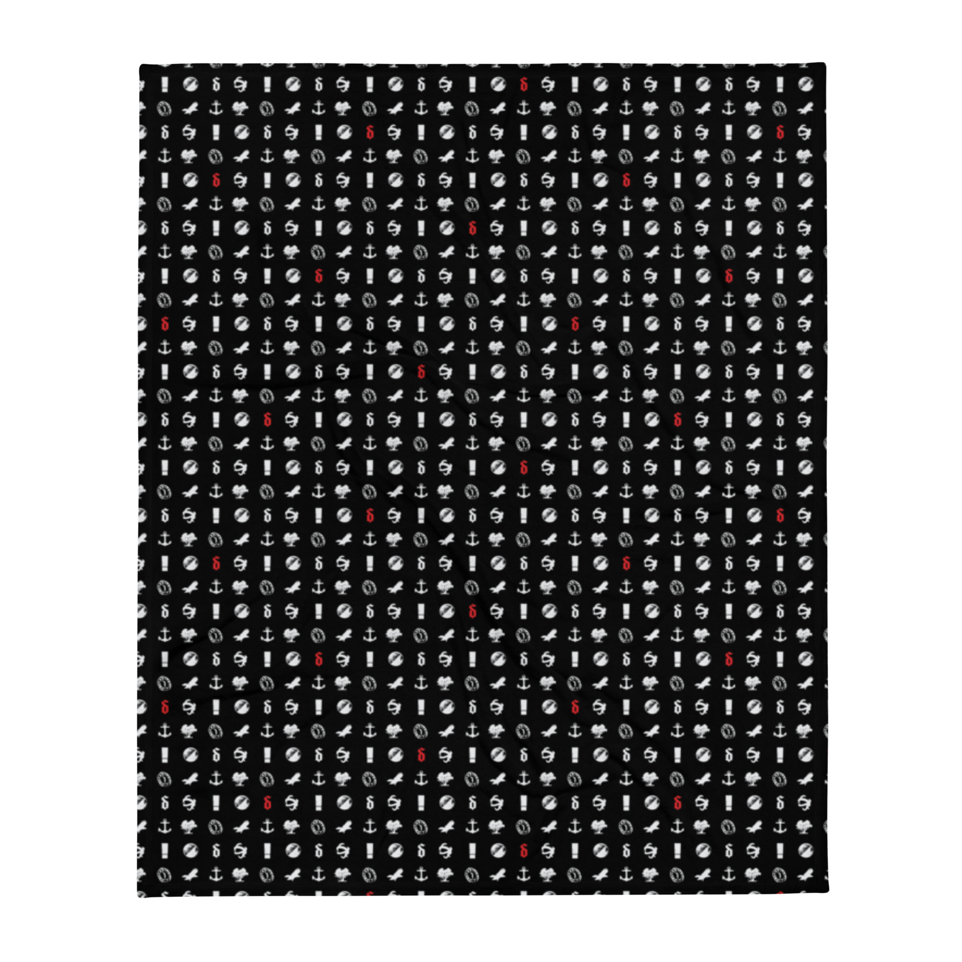 The Legacy Throw Blanket from Shinedown measure 50"X60" and is 100% polyester and features a repeating pattern of icons representing the bands discography on the front.